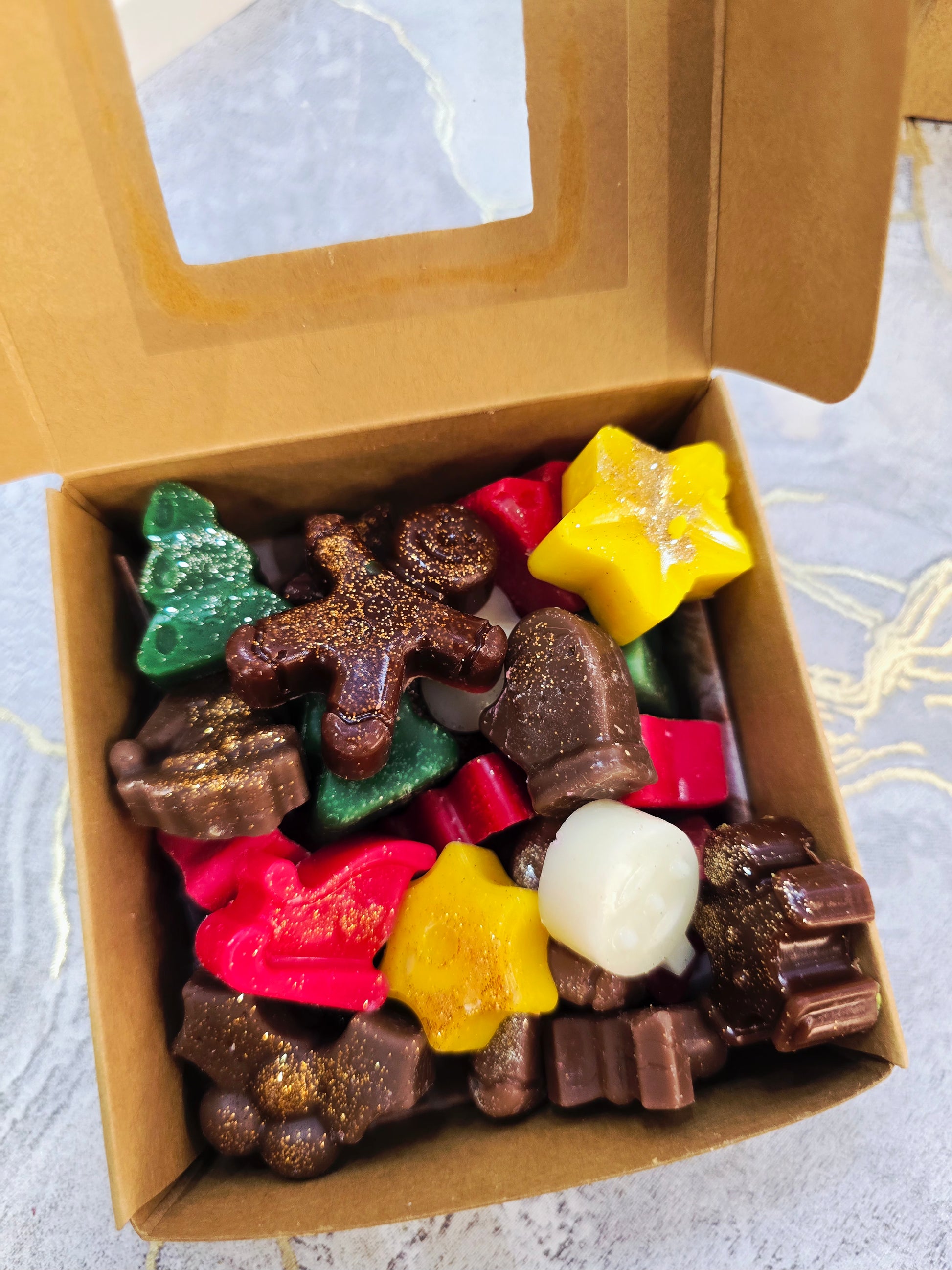 ✨ 1 Κουτί Χριστουγεννιάτικων Wax Melts (περίπου 90γρ) – χειροποίητα wax melts σε γιορτινά σχέδια, αρωματισμένα με το γλυκό και πικάντικο άρωμα Melomakarona, εμπνευσμένο από τα παραδοσιακά ελληνικά μελομακάρονα με μέλι και καρύδι.
