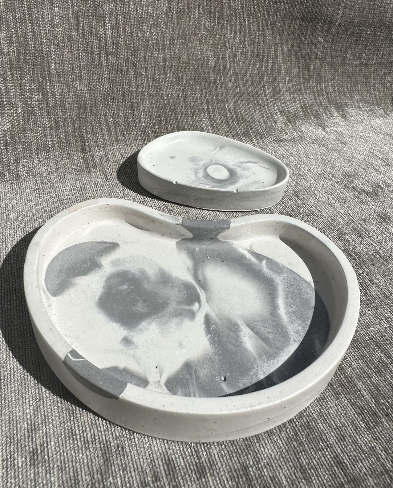 Bean Shape Concrete tray - Black and white Marble CHD008