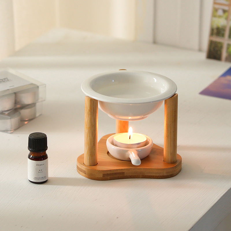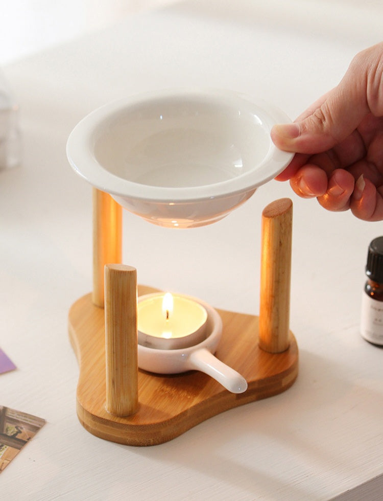 Καυστήρας Κηρού & Αρωματικών Ελαίων από Μπαμπού και Κεραμικό|Gift 2 Wax Melts & 1 tea candle