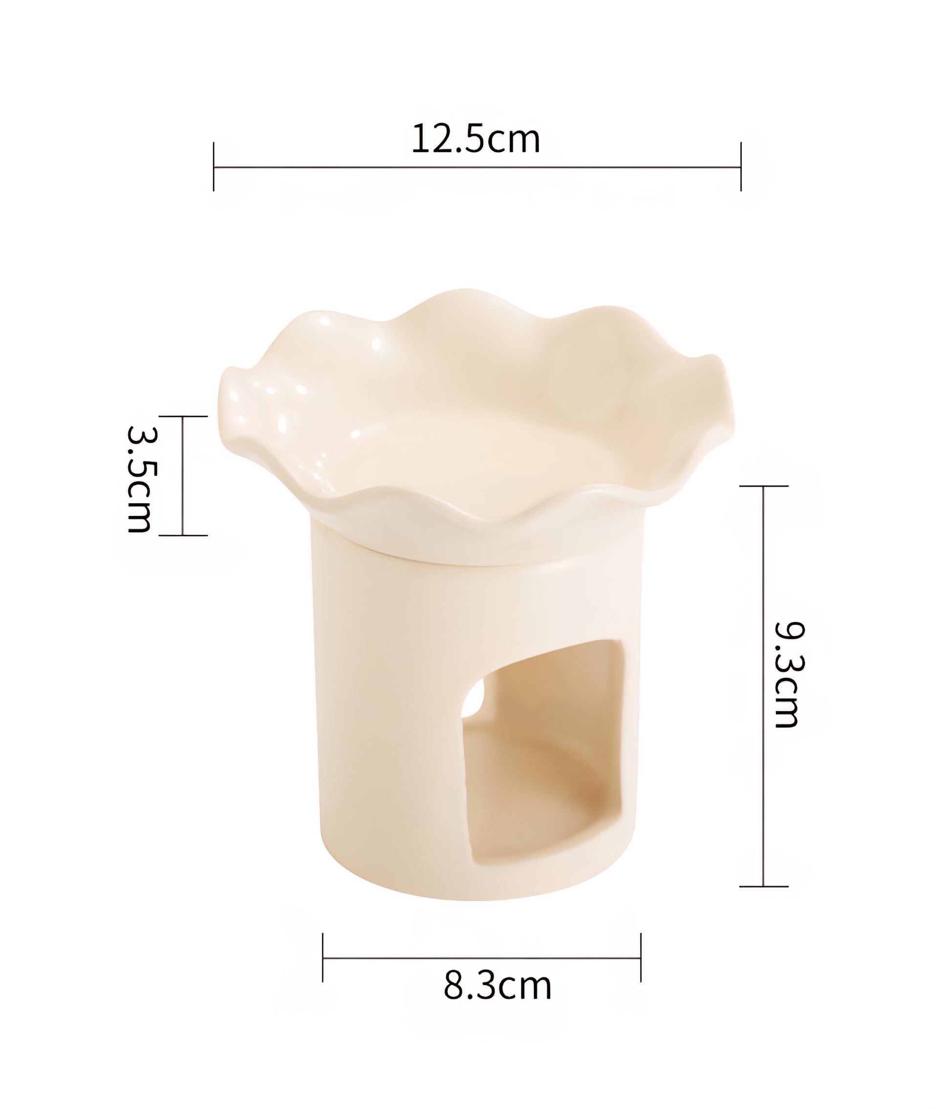 Προσθέστε μια κομψή και ζεστή πινελιά στον χώρο σας με αυτόν τον κεραμικό καυστήρα κηρού, σχεδιασμένο με κυματιστό επάνω μπολ που χαρίζει μια ρομαντική και φίνα αισθητική. Η απαλή, γυαλιστερή υφή του τον καθιστά ιδανικό για κάθε γωνιά του σπιτιού ή του γραφείου σας.